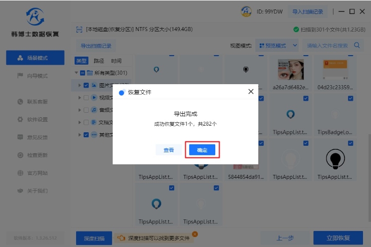 6. 數(shù)據(jù)恢復(fù)成功后,只需點(diǎn)擊“確定”,這樣數(shù)據(jù)恢復(fù)操作就成功完成了。