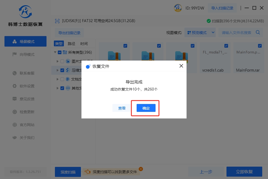 6.韓博士成功地恢復了您的數據,并提示操作完成。緊接著,請點擊“查看”,以便查找您已成功恢復的文件。