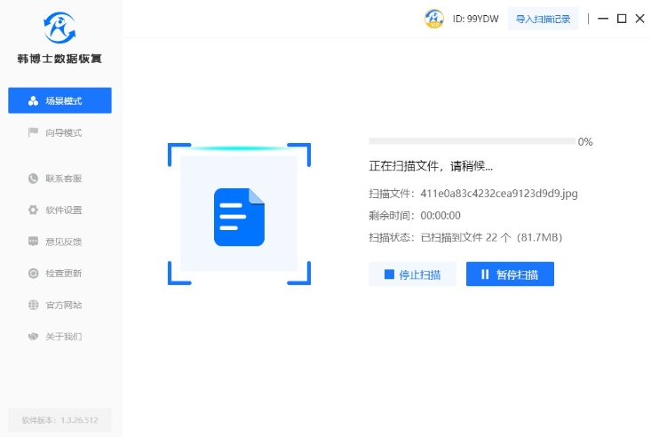 1. 打開韓博士數據恢復軟件,這是內存卡數據恢復的必要步驟。然后,在軟件界面中找到“場景模式”,點擊“U盤/內存卡恢復”。