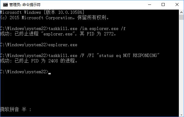 當然,大家也可以直接終止所有的無響應進程,此時就需要執行另外的命令: