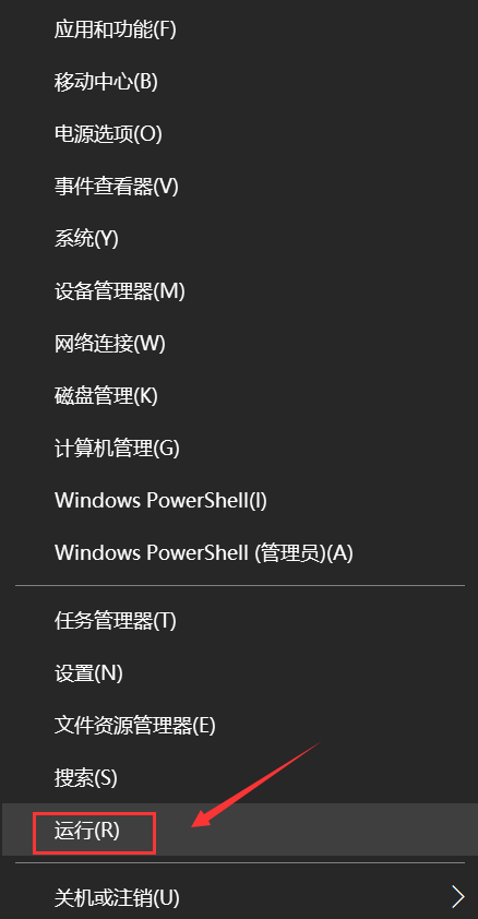 1.右鍵選擇開始菜單,打開“運行”窗口。