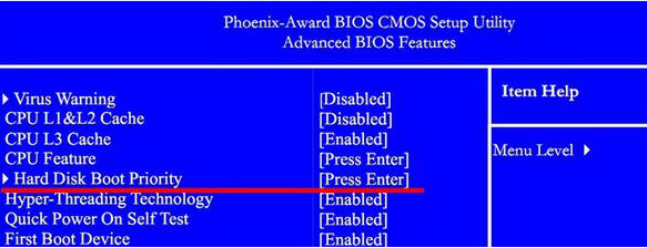 3.開始使用方向鍵找到并選擇“Hard Disk Boot Priority”選項回車,找到其中的“USB-HDD...”,最后按下“F10”保存設置。