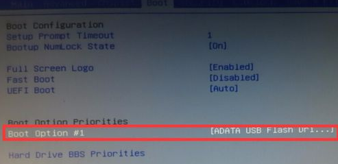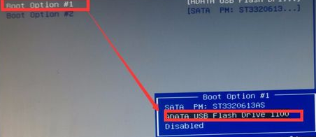 5.在彈出的小窗口中使用方向鍵移動至“ADATA USB Flash Drive 1100”,回車后按下F10保存設置即可。