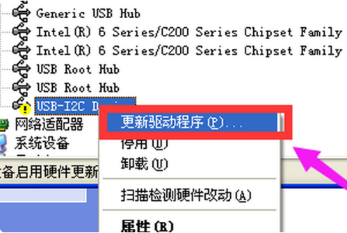 4.右鍵選中該選項,最后進行更新驅動程序。