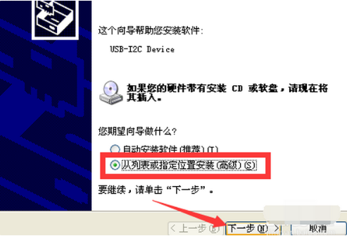 5.在安裝向導界面中開始選擇“從列表和指定位置安裝”。