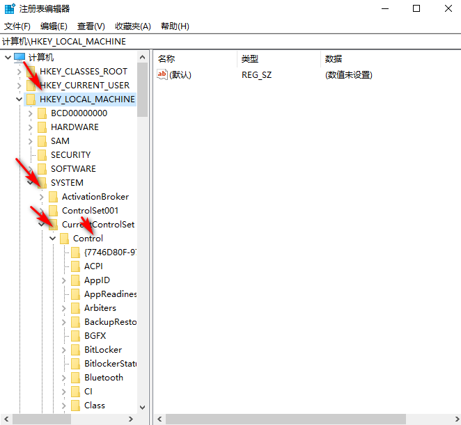 1.打開電腦的注冊表編輯器界面,按照以下路徑依次打開對應選項: