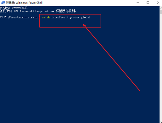 4.繼續在界面中輸入命令回車:netsh int tcp set global autotuninglevel=disabled