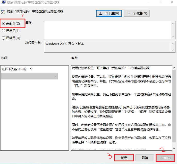 3.彈出對應屬性界面后,直接點擊未配置并保存設置即可。