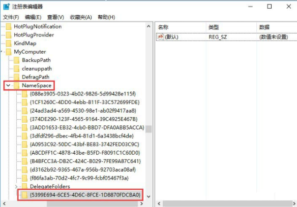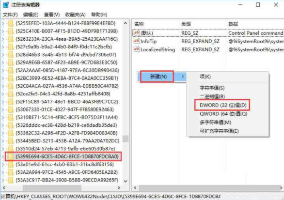 6.繼續(xù)定位到以下界面,右鍵新建項,命名為{5399E694-6CE5-4D6C-8FCE-1D8870FDCBA0}