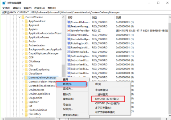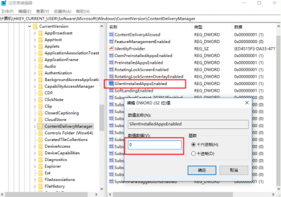3.如果找不到以上的數(shù)據(jù),直接進行新建后命名為SilentInstalledAppsEnabled,按照以上步驟操作即可。