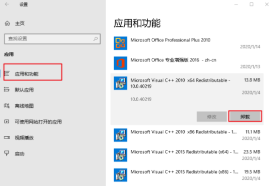5.找到應(yīng)用和功能,開始卸載那些安裝的游戲跟軟件即可。
