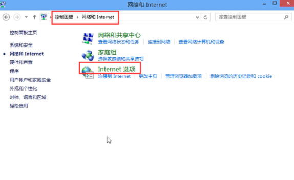 1.打開控制面板,找到網絡和internet下的internet選項進入。