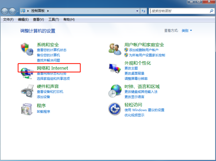 1.打開電腦上的控制面板,隨后選擇網絡和Internet選項進入。
