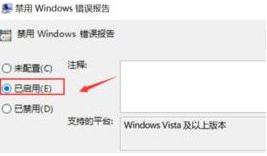 4. 打開windows組件,找到“windows錯誤報告”,再點擊“禁用windows錯誤報告”。