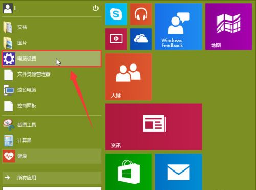1.進入win10操作系統,點擊“開始”,打開“電腦設置”。