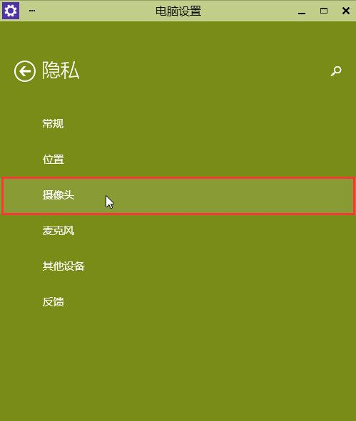 3.在頁面中找到“攝像頭”并打開。