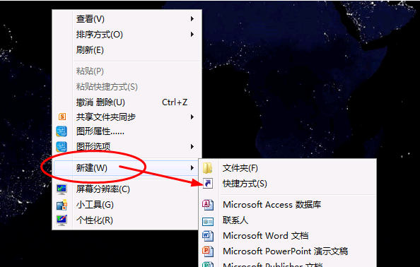 1.進(jìn)入win7操作系統(tǒng)桌面,點(diǎn)擊鼠標(biāo)右鍵,選擇“新建”,然后“快捷方式”。