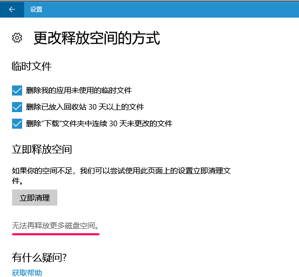 6. 系統文件清理完成。(再一次點擊【立即清理】,則會顯示:無法再釋放更多硬盤空間。)