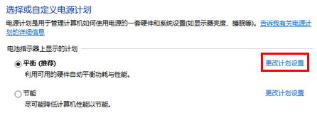 2.在當(dāng)前啟用的電源計(jì)劃里點(diǎn)擊“更改計(jì)劃設(shè)置”。