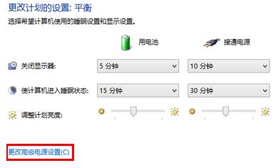 3.在以下頁面點(diǎn)擊“更改高級電源設(shè)置”。