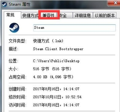 打開steam,鼠標右擊選擇“屬性”,點擊“兼容性”,勾選“以兼容模式運行這個程序”、“禁用視覺主題”、“禁用桌面元素”和“以管理員身份運行此程序”。