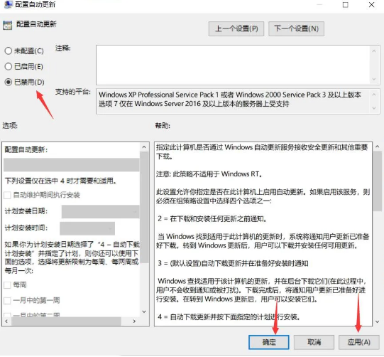3.選擇禁用,應用、確定保存,然后重啟電腦。