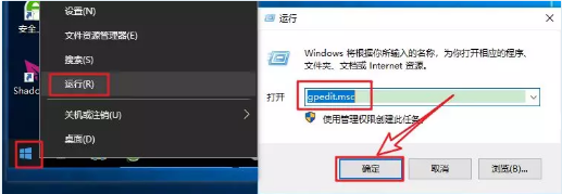 1.點擊『開始』菜單選擇『?運行』,輸入『gpedit.msc』點擊『確定』