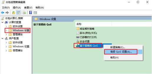 2.點擊『Windows 設置』,鼠標右擊『基于策略的 QoS』選擇『高級QoS設置』。