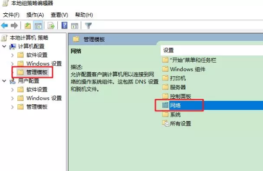 4.點擊『管理模板』,雙擊『網絡』。
