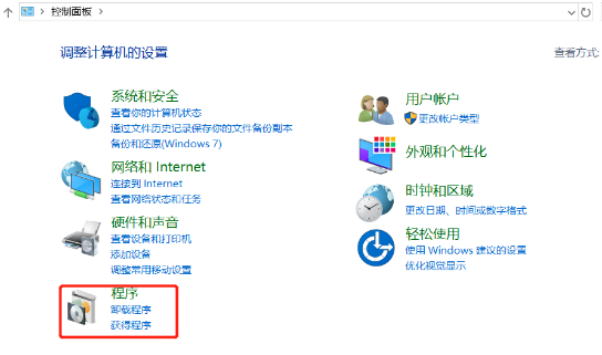 1. 點擊搜索欄輸入控制面板點擊運行控制面板,選擇程序。
