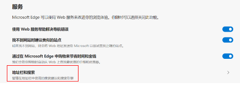 3.往下拉找到服務選項里面的地址欄和搜索。