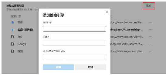 5.若您想要的搜索引擎沒有列出,點擊管理搜索引擎,點擊添加跟進提示輸入添加添加即可。