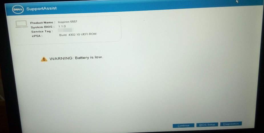 接上充電器給電腦進行充電,再點擊報錯頁面右下角的Continue選項,進入系統即可。