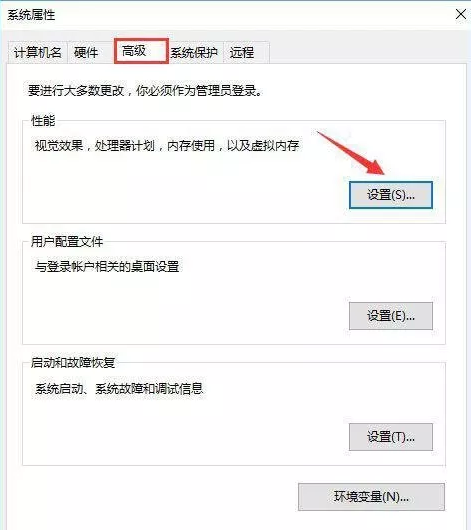 3.在系統屬性界面中,切換至“高級”選項卡中,點擊“設置”按鈕。