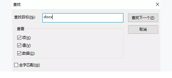 注意:若在注冊表中使用CTRL + F查找時,沒有找到相應(yīng)的目錄,請注意圖中標出的“查找下一個”。CTRL + F只能查找該位置后的內(nèi)容,請選擇HKEY_CLASSES_ROOT目錄中的第一個目錄后,重新查找。