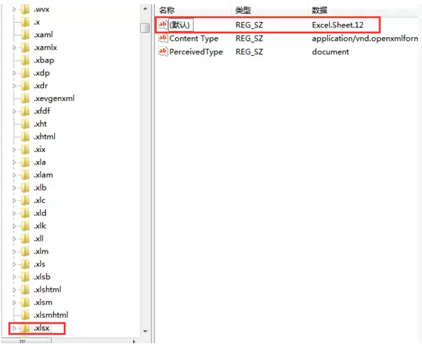 5.雙擊(默認)一項,并將(默認)改為Excel.Sheet.12。