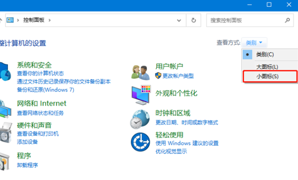 1、打開控制面板,修改查看方式為“小圖標”。