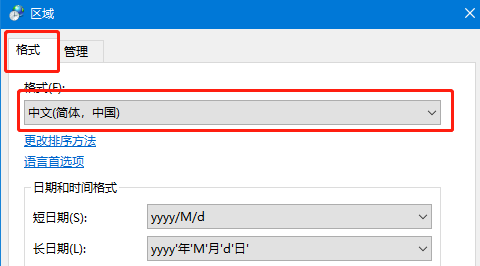2、選擇“區域”打開后,在“格式”菜單下,將格式內容設置為“中文(簡體,中國)”。