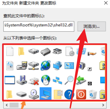 3、此時會彈出一個窗口,我們可以直接從列表中選擇一個圖標,也可以點擊“預覽”自主選擇圖標。