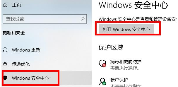2、選擇“更新和安全”,之后點擊“window安全中心”,點擊 “打開windows安全中心”。