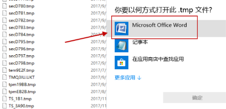 3、但如果是非正常退出word軟件產(chǎn)生的tmp文件,我們則可以選擇以“word文檔”的方式來打開tmp文件,用來恢復word中最近保存的數(shù)據(jù)。