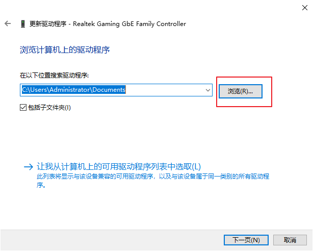 5、接下來(lái)點(diǎn)擊“瀏覽”,瀏覽位置直接找到光盤網(wǎng)卡驅(qū)動(dòng),然后進(jìn)入“下一步”,系統(tǒng)就會(huì)自動(dòng)進(jìn)行安裝驅(qū)動(dòng)啦。