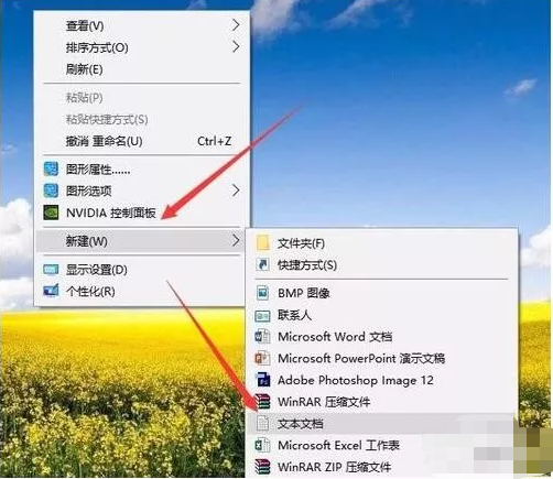 右鍵點擊桌面,在彈出菜單中依次點擊“新建/文本文檔”菜單項。
