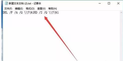 在打開的文本文檔中輸入DEL /F /A /Q \\?\%1RD /S /Q \\?\%1。