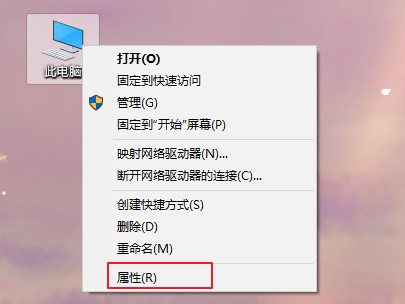 1、右鍵點擊系統桌面“此電腦”圖標,選擇“屬性”打開。