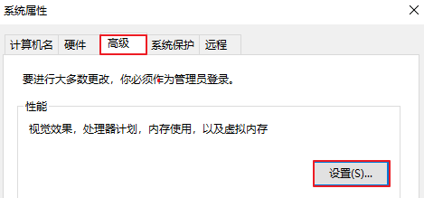 3、切換到“高級”菜單中,點擊性能“設置”。