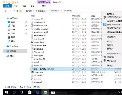 定位X:\Windows\System32文件夾目錄,找到“SlideToShutDown.exe”(X代表系統(tǒng)安裝盤)。