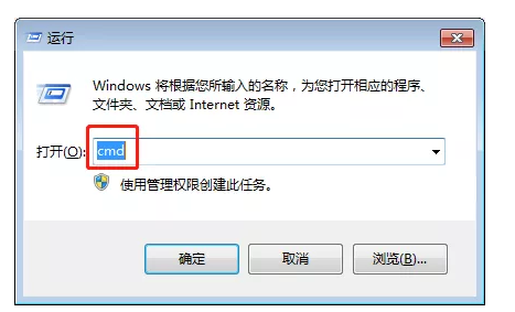 按下“Win+R”鍵,打開運(yùn)行,在如下窗口中輸入cmd打開命令行窗口。