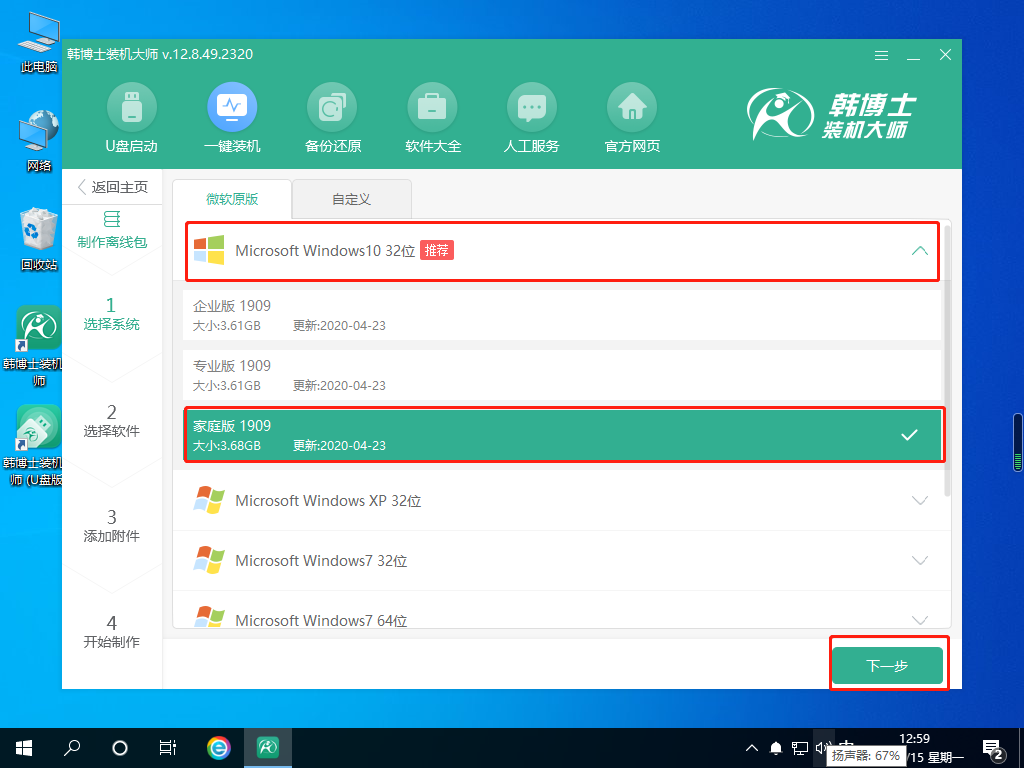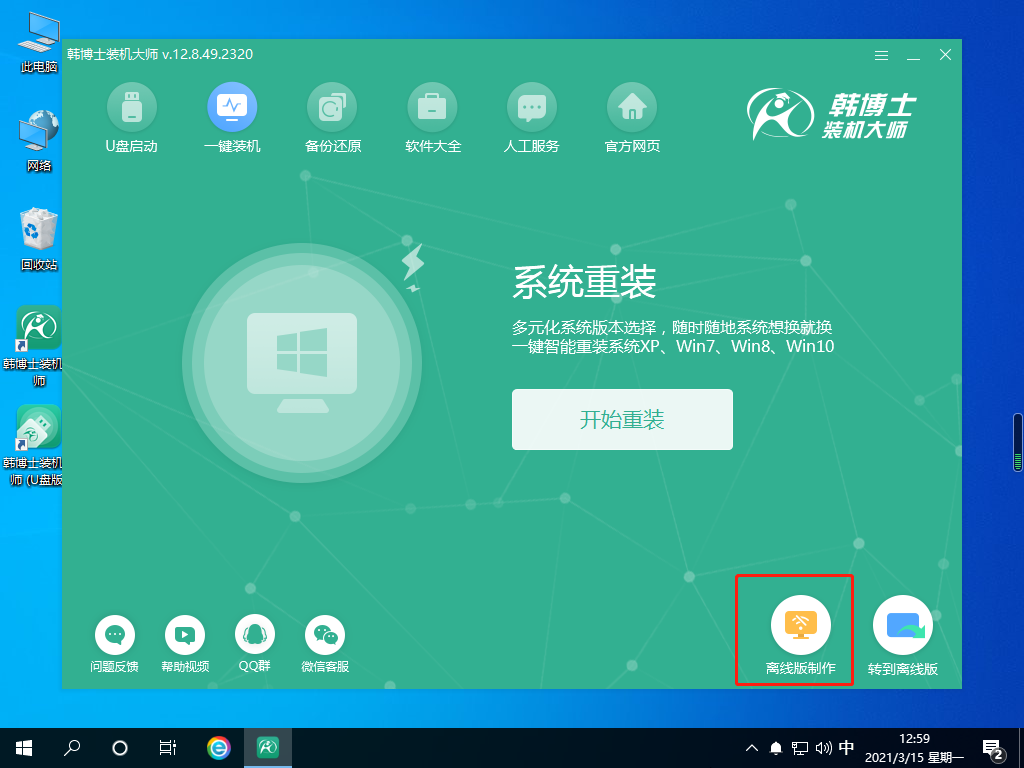 1.打開韓博士裝機大師開始進入離線安裝包制作