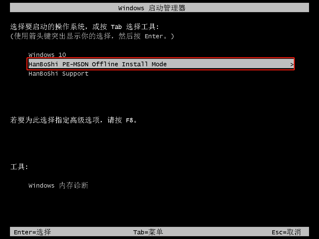 12. 在以下的啟動管理界面選擇韓博士PE系統回車進入